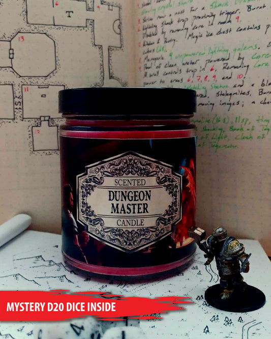 Scented Candle Dungeon Master with Surprise D20 Dice