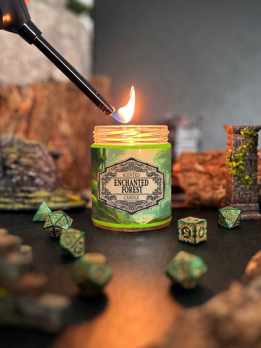 Scented Candle Enchanted Forest with Surprise D20 Dice